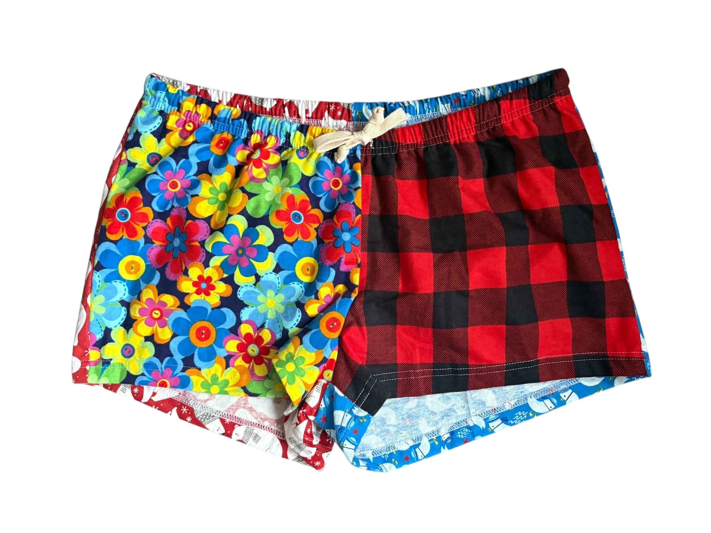 Female BOXERS Flannel- Colour block - Flower/Buffalo Check & Blue Bird / Polar Bear