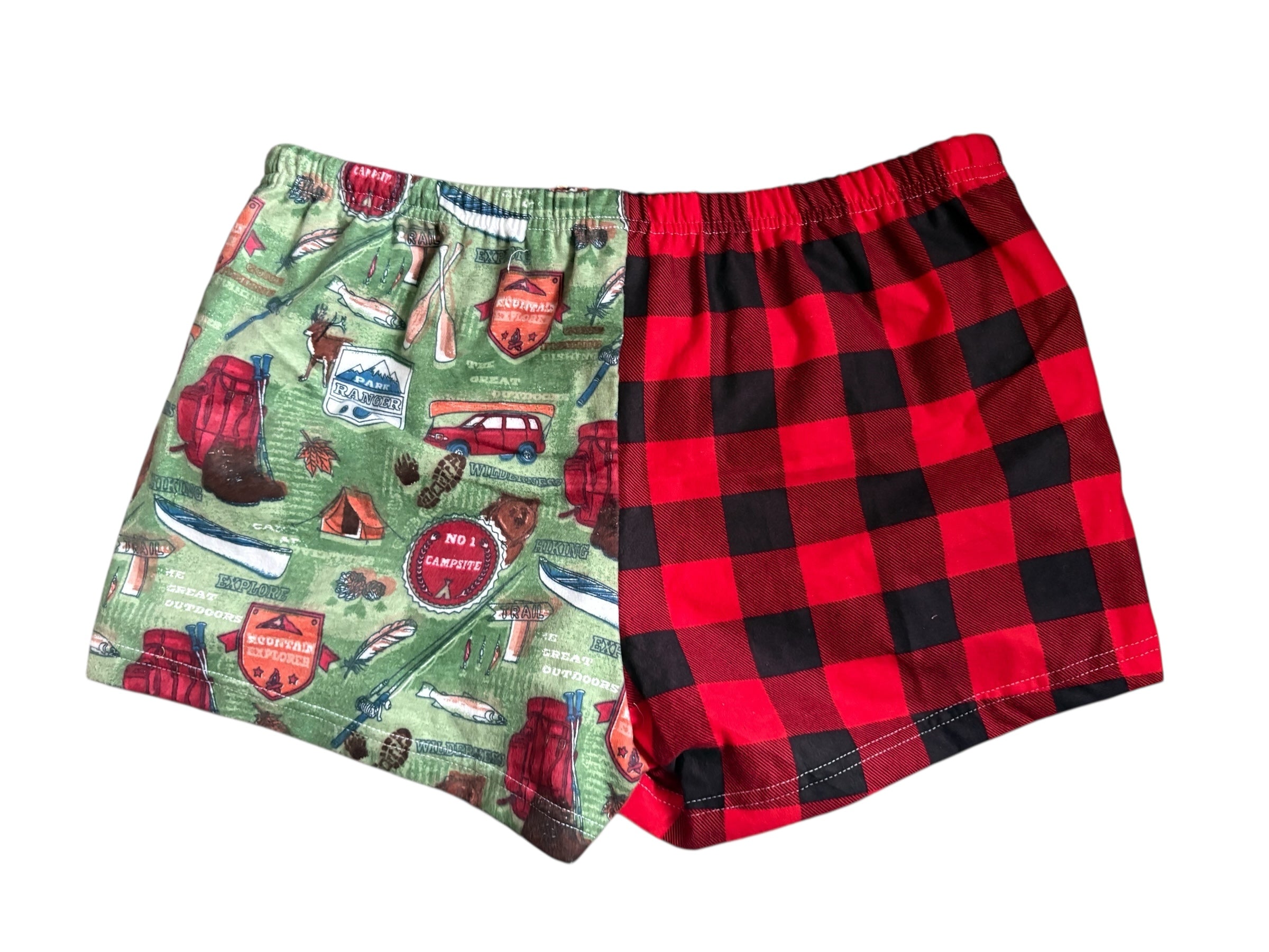 Female BOXERS Flannel- Colour block - Blue Plaid/ Wild Animals & Camping/ Buffalo Check
